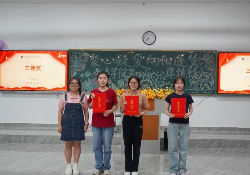 这次心理情景剧大赛,演员们也通过生动的语言和形象的表演,将生活中的心理冲突、烦恼、困惑等,作为一种剧本的形式体现出来,把其中蕴含的道理以情景剧的方式进行表演。而通过本次比赛,更好地让我们拥有着健康的阳光心理,并且明白健康阳光心理的重要性。让我们每一个人都要保持良好的心态面对人生,做阳光教院学子,保持自信,活出更好的人生!