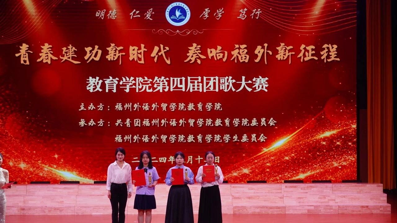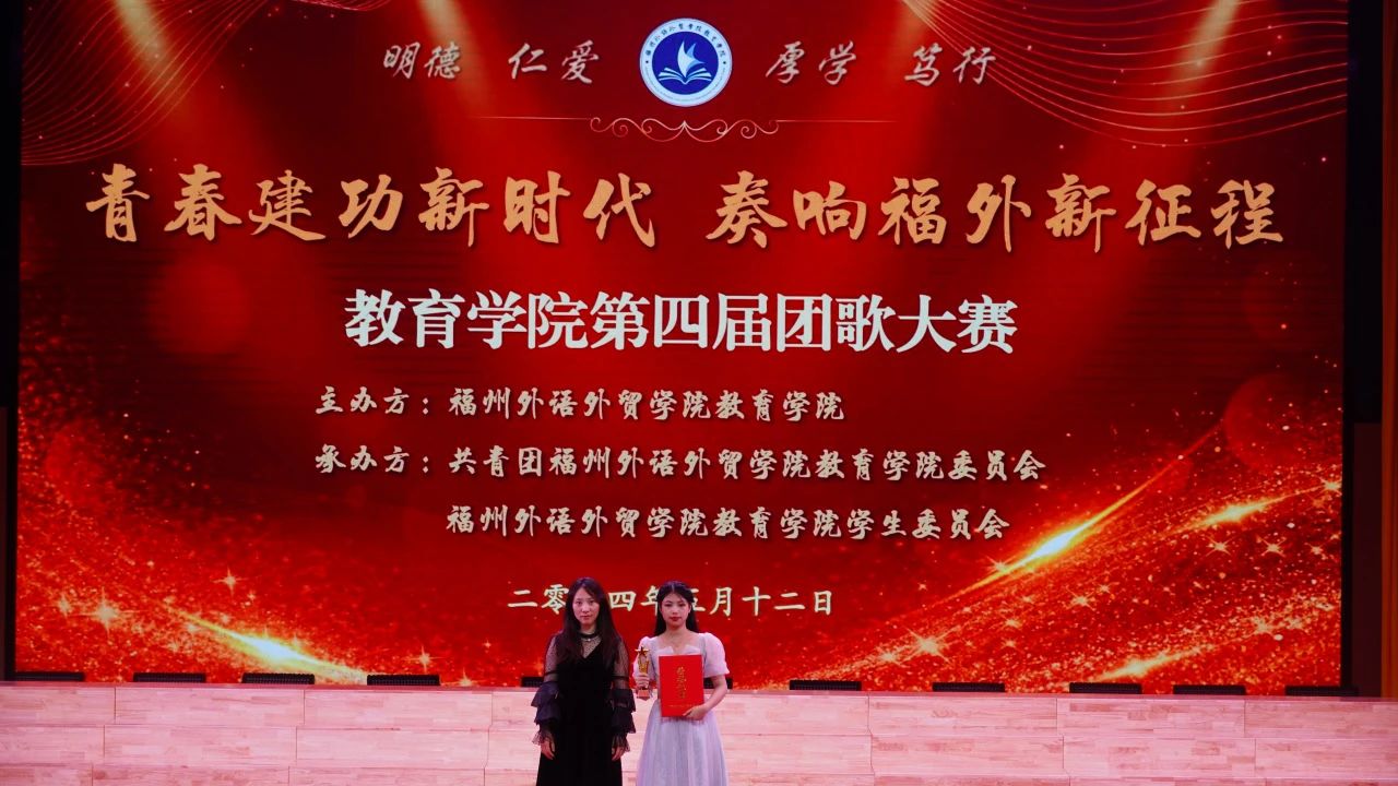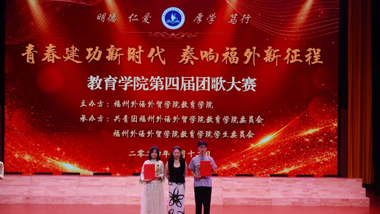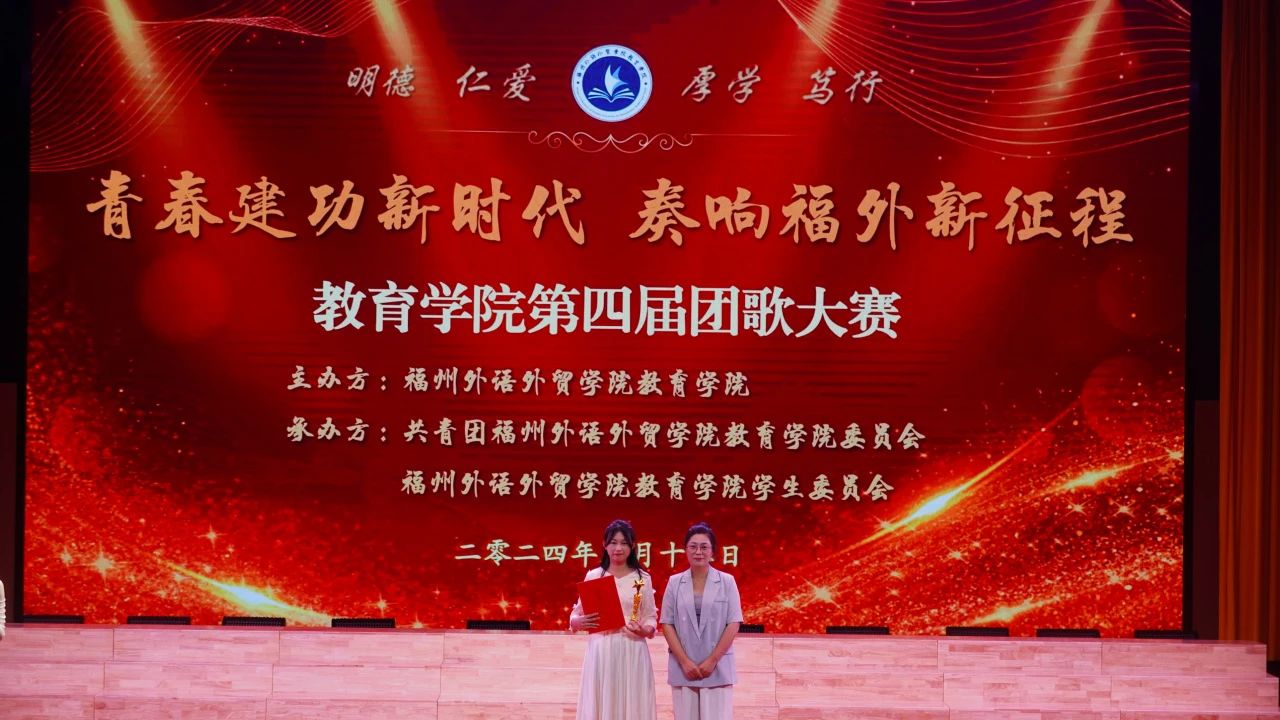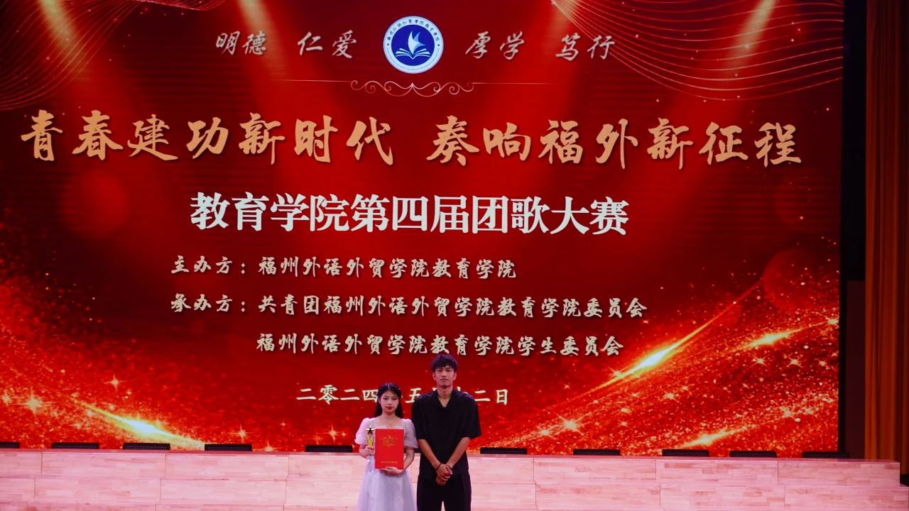 青春心向党,唱响团歌魂。为增强团组织凝聚力,动员和号召广大青年继承发扬“五四”精神,充分展现青年热爱祖国、朝气蓬勃、昂扬向上的精神面貌,2024年5月12日,教育学院在博雅音乐厅举办了第四届团歌大赛。“青春建功新时代·奏响福外新征程”,学子们以青春之名书写清澈挚爱的梦想,以心中之歌献礼腾飞的伟大祖国。