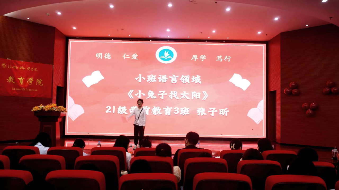 本次风采展由学前教育专业和小学教育专业获得一、二等奖的五名同学作为代表进行教师技能展示。