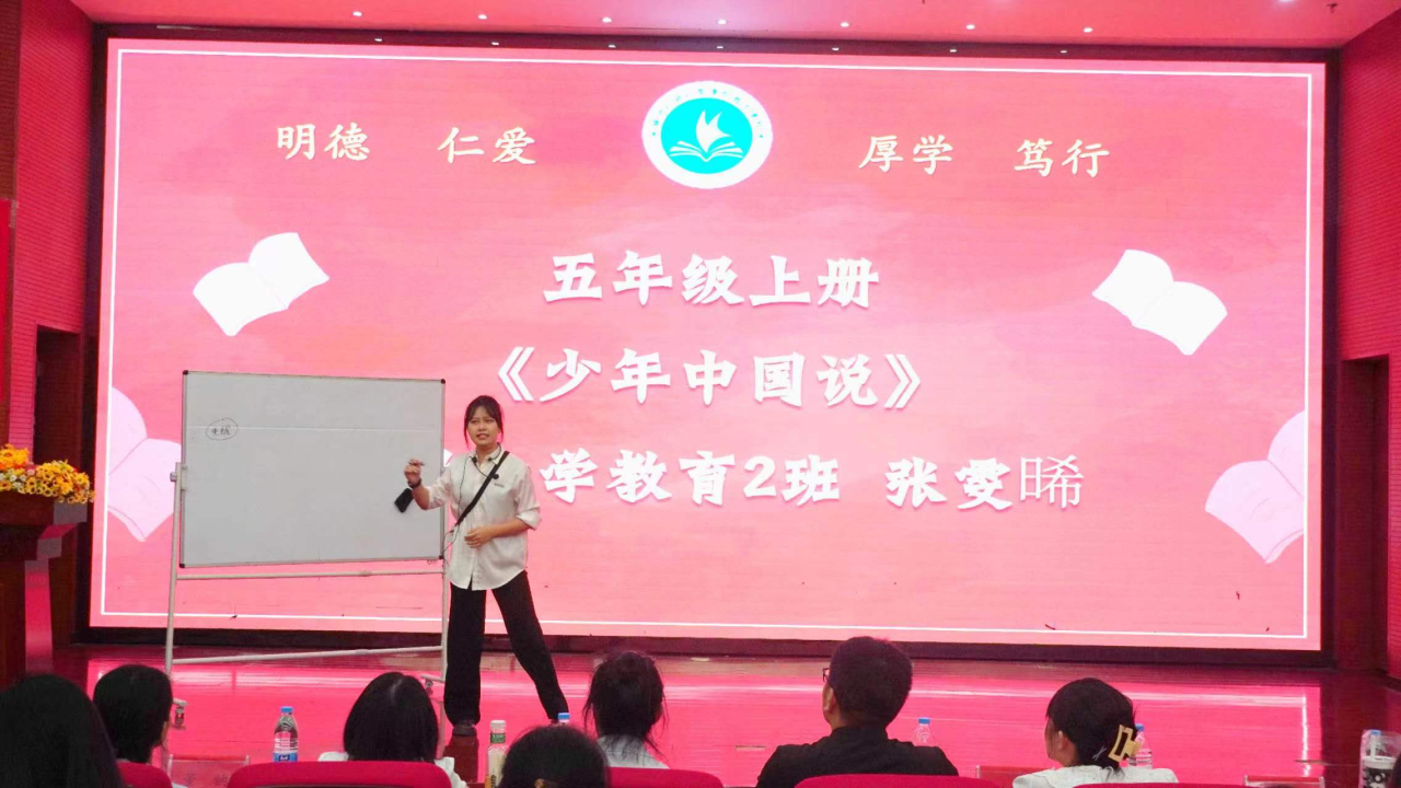 教育学院团委书记、办公室副主任修丽萍老师首先对同学们在比赛中展现出高水平的专业素养和创新思维进行了表扬,并向获奖同学表示祝贺,同时也感谢对此次比赛所有付出的老师和同学。并在此希望同学们能成为习近平总书记对师范生提出的四有好老师,要做立德树人的践行者,弘扬教育家精神,培养高尚的师德师风,牢记学高为师、身正为范。最后,她指出,本次比赛是教学成果的检阅,同学们要以此为契机,把握院训精神,提升教学能力和专业素养, 努力践行教书育人的初心使命。