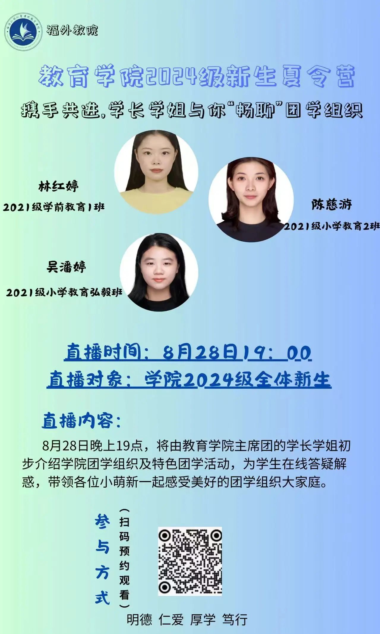 8月28日晚上19点,由教育学院主席团的学长学姐代表在云空间与24级新生同学初相见,旨在带领各位小萌新一起学习团学小知识。