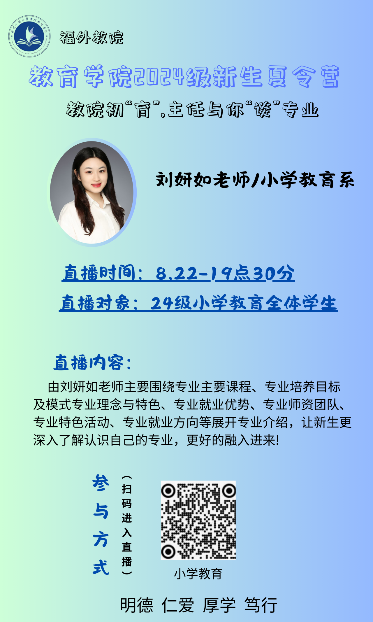 8月22日晚,由教育学院小学教育系刘妍如老师在云空间带领24级新生走进小学教育专业,深入了解专业奥秘。