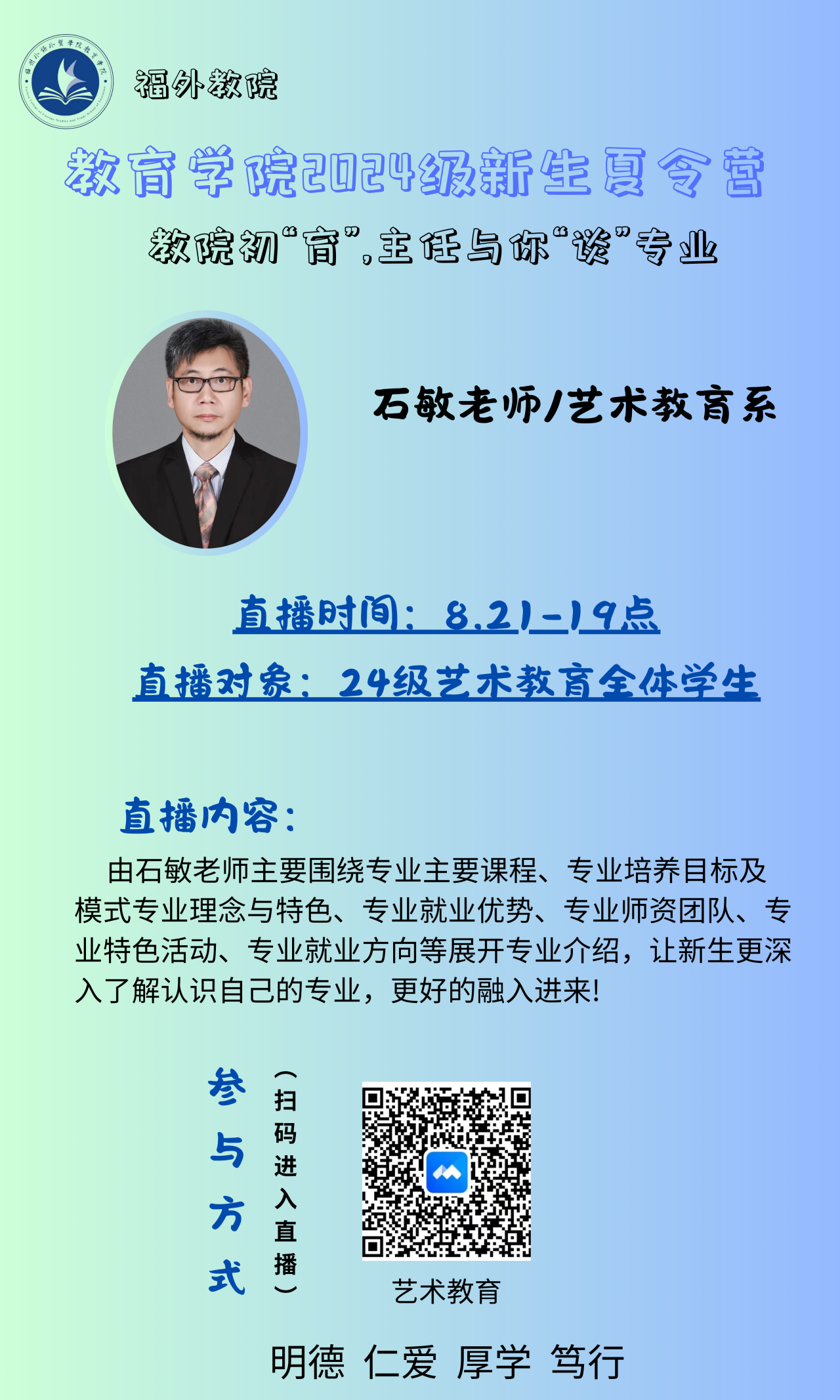 8月21日晚,由教育学院艺术教育系主任石敏老师在云空间带领24级新生走进艺术教育专业,深入了解专业奥秘。