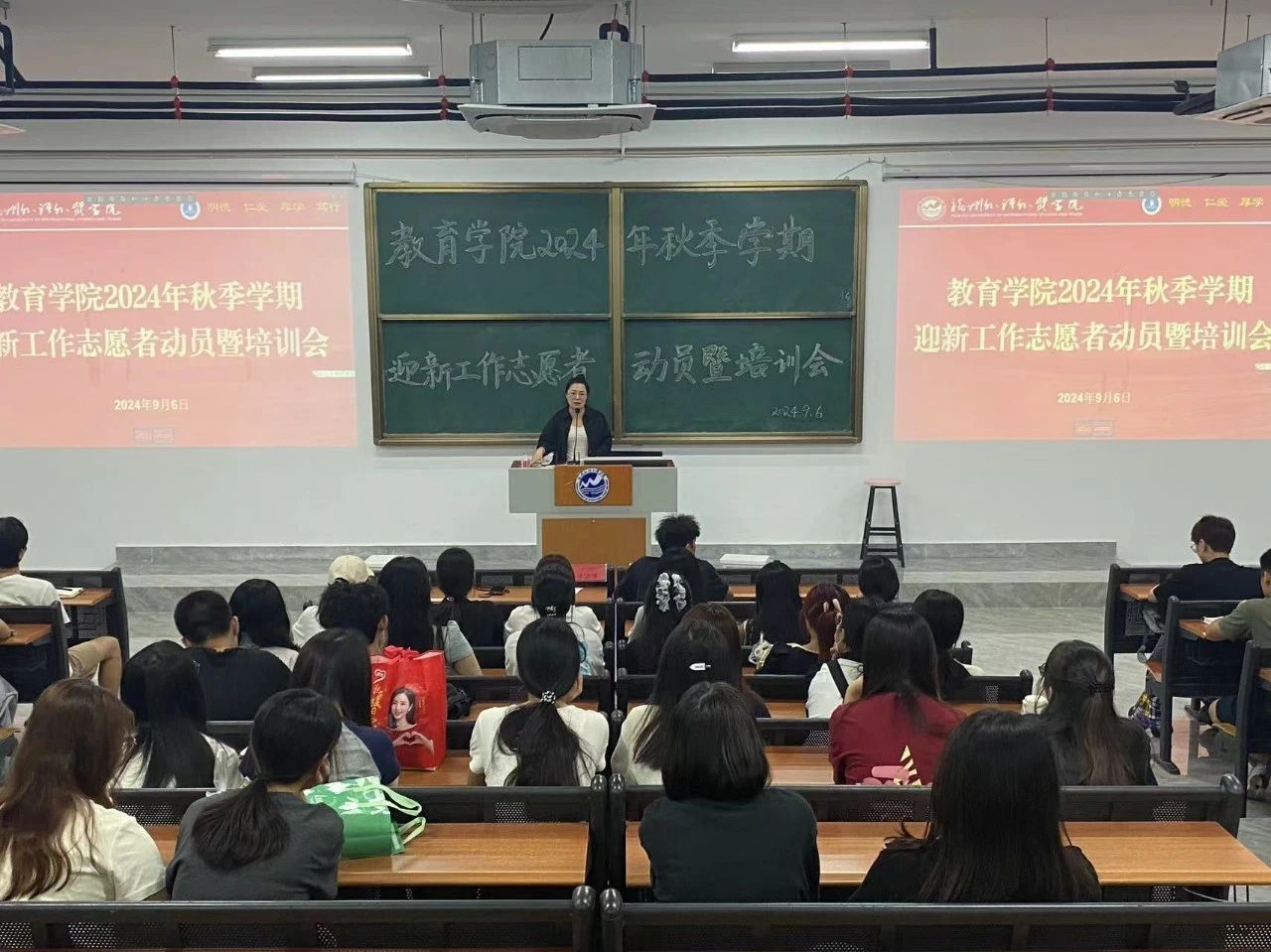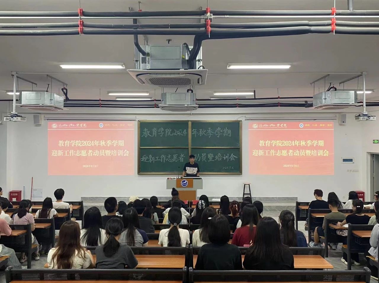 迎新启航,“育”你同行。9月6日晚,我院2024年秋季学期迎新工作志愿者动员暨培训会于人文楼3-201顺利召开。本次培训会由团委副书记陈杰明主持,团委书记修丽萍,各年级新生辅导员及迎新工作志愿者参加本次会议。