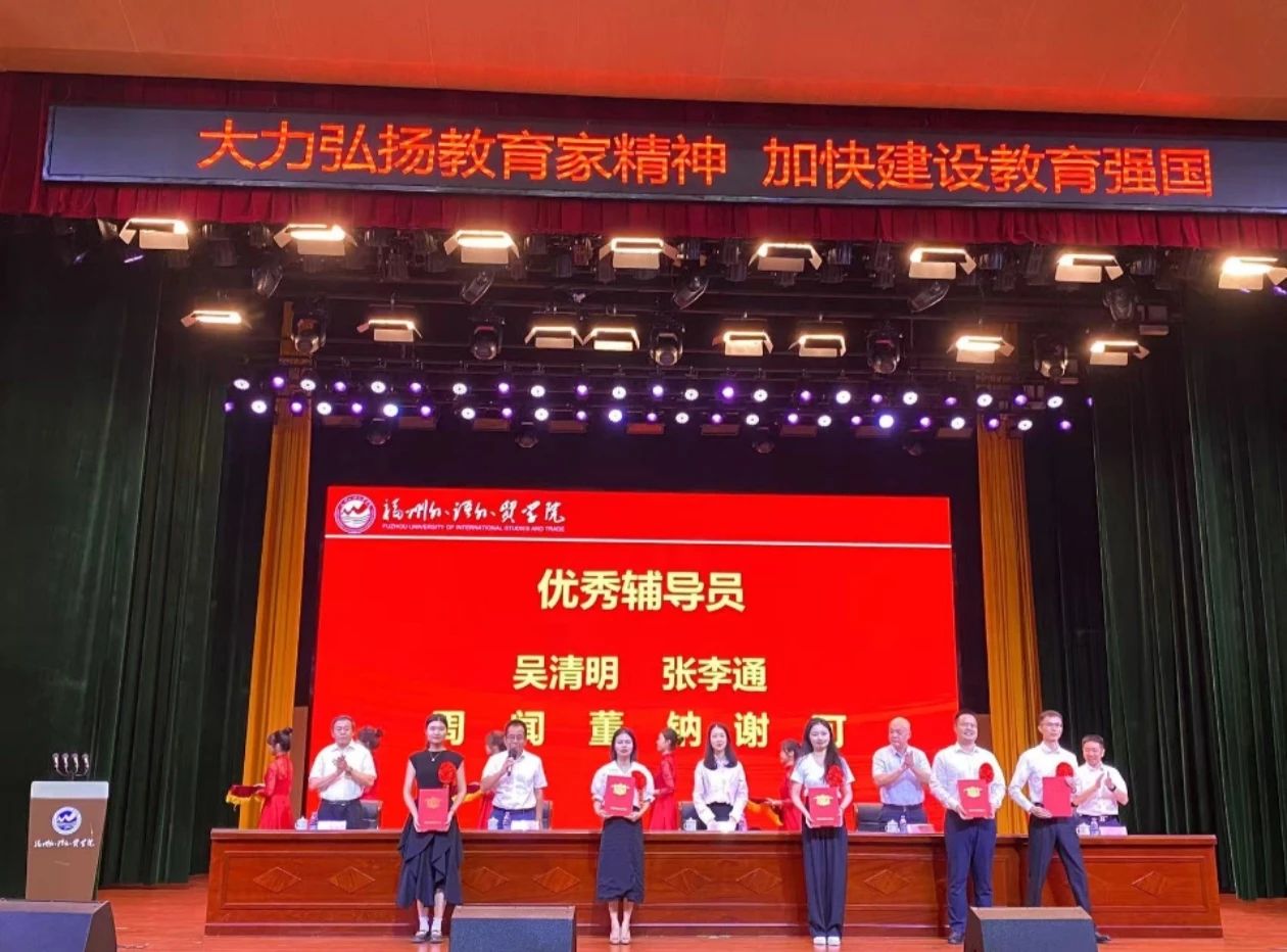 2024年9月10日是我国第40个教师节。9月10日下午,学校隆重举行庆祝2024年教师节表彰大会,对全校教师队伍及先进单位一年来取得的各级荣誉和先进事迹进行表彰。其中,我院黄慧老师荣获“优秀教育工作者”荣誉称号,董钠老师荣获“优秀辅导员”荣誉称号。