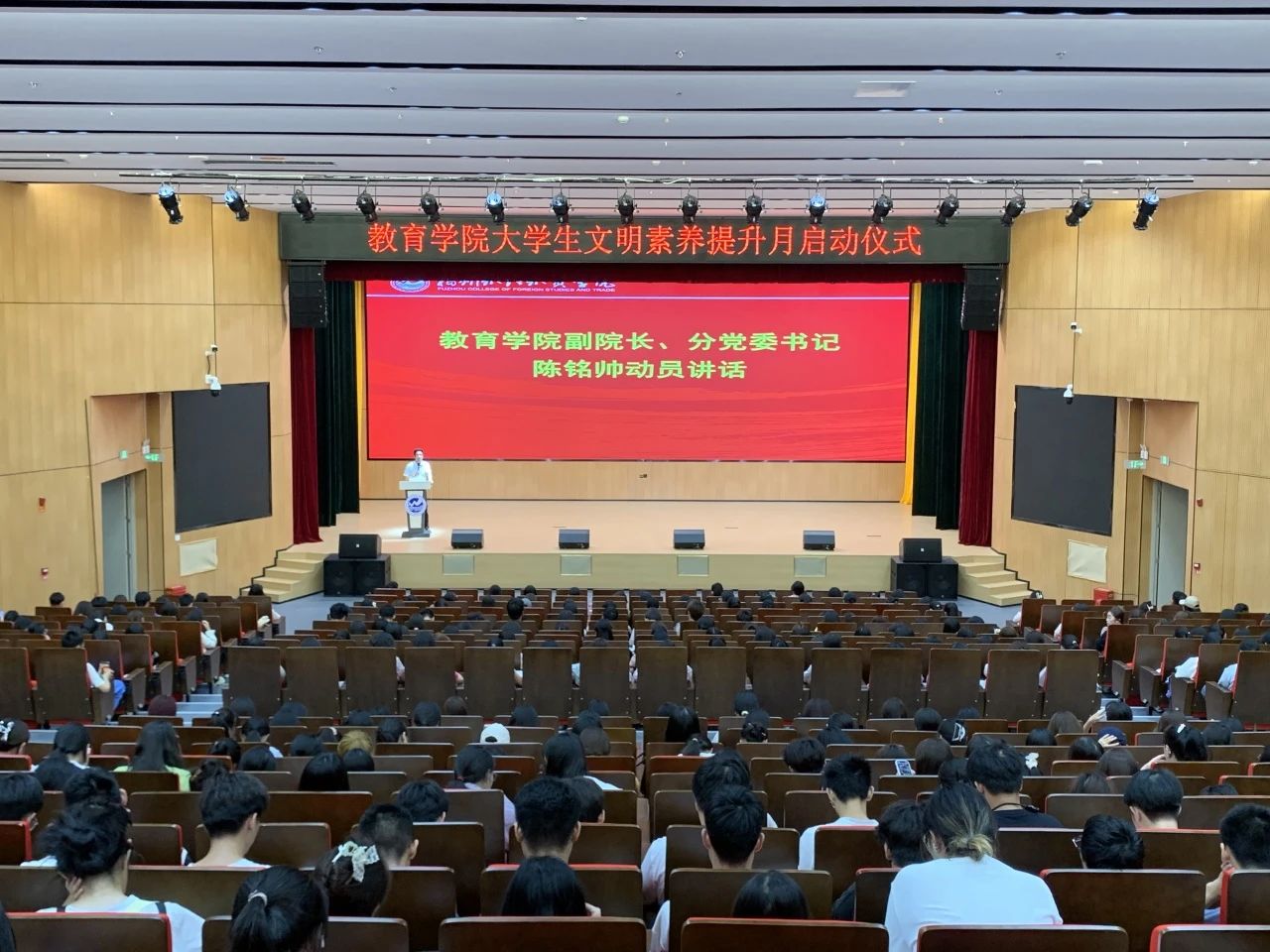 启动仪式上,陈铭帅书记对文明素养提升月活动进行全面部署,他指出,文明素养提升是学院贯彻落实“立德树人”根本任务和践行“五育并举”理念的重要举措,也是对教院青年提高专业素养和综合能力的基本要求。同时,他对同学们提出几点希望和要求,一是自觉践行社会主义核心价值观,将其内化于心,外化于行。积极提升个人文明素养,推动校园文明建设;二是培养良好的行为习惯。在日常生活中严格要求自己,从身边做起,从小事做起,养成“讲文明,懂礼仪”的良好习惯;三是积极传承礼仪之风,弘扬文化之美。最后,他希望同学们能够内外兼修,提高自身礼仪文化修养,展示出教院青年应有的青春本色!