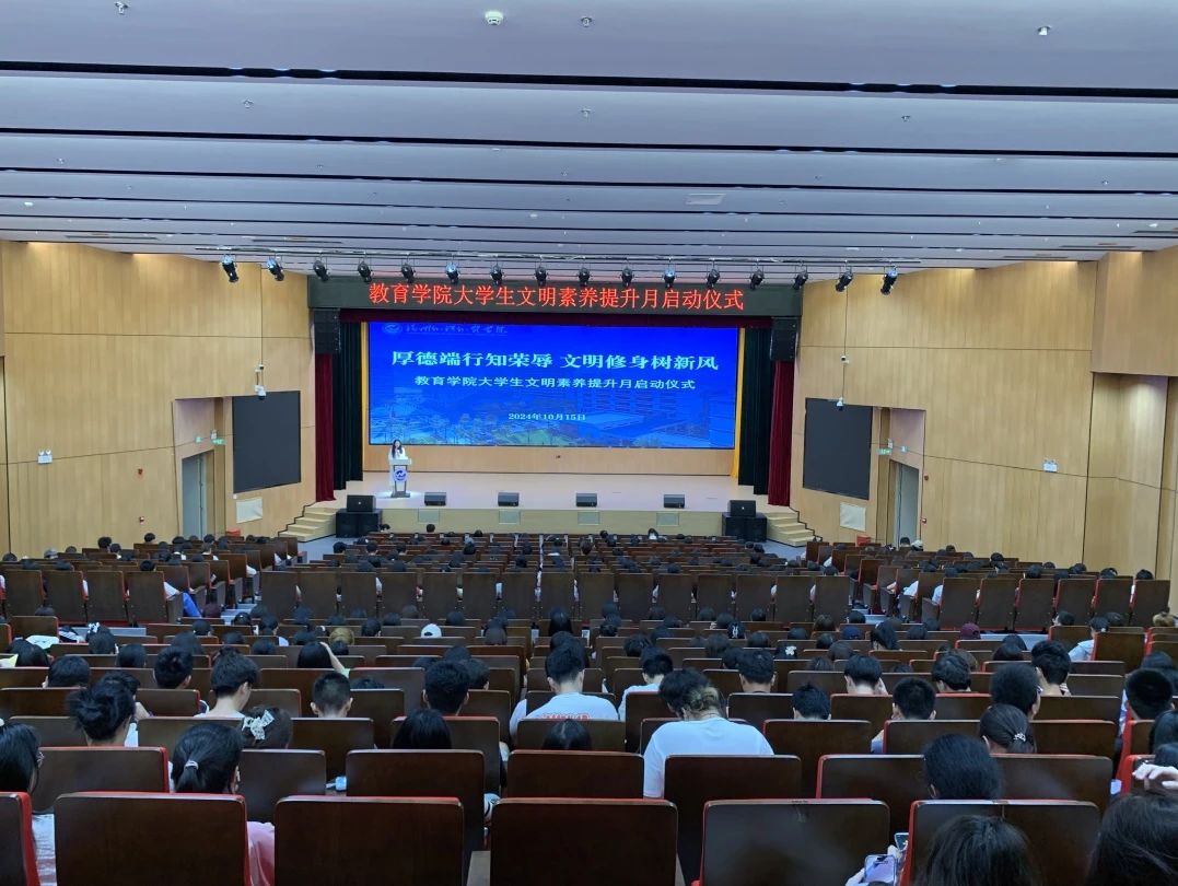 为深入学习贯彻习近平新时代中国特色社会主义思想,全面实施“新时代铸魂育人工程”,进一步加强和提升学生文明素养,推进院风学风建设。10月15日,我院于滨海校区学术报告厅举行“文明素质提升月”启动仪式。学院分党委书记、副院长陈铭帅出席活动并作动员讲话。学院团委书记、办公室副主任修丽萍、2024级全体学生参加活动。仪式由学院2024级学生会秘书长姜凤华主持。