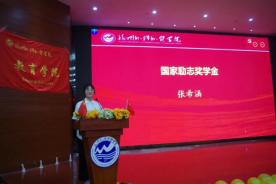 国家励志奖学金获得者,2019级学前教育3班的张希涵同学,向同学们介绍了她在大学两年之内的个人事迹与所获荣誉,随后张希涵同学分别从思想建设、学习表现、社会实践等方面进行深入分析。