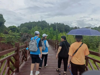 为使团队成员能更好地宣讲湿地,这里的讲解员带领团队成员游览中山河湿地公园。实地深入走进中山河湿地公园,通过讲解员生动的介绍并观察这里丰富的绿植、多种多样的生物,呼吸大自然清新的空气让我们更加理解习总书记提出的“绿水青山就是金山银山”的理念。讲解员还带领团队成员来到科普宣教馆,在馆里通过科普湿地知识、游览观摩模拟湿地环境、观看宣教片等使成员们更加了解湿地,这些也为之后宣讲的顺利开展奠定了基础。