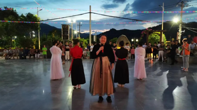6月28日,团队成员们在郑公盾故居开展“周末益课堂”活动。宣传“核”知识,团队成员对屿北村中小学生进行核能科普工作,提高同学们的核科技知识素养,宣传我国当前的核能发展背景和必要性。团队成员用所学知识,深情饱满的朗诵来带动同学们,通过耐心地指导,提高同学们的朗诵能力。团队成员与学生用深情的朗诵传递他们的感情,展现了年轻一代朝气蓬勃的精神风貌。夜晚,团队成员通过在校所学的声乐、舞蹈等专业课程,与村民一同开展文艺汇演,满足村民精神需求,增加自身表演经验,助力乡村文化振兴。