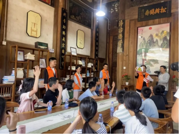 6月27日,我队成员到达郑公盾故居进行汉服宣传片拍摄,了解郑公盾的伟大事迹,感受到中华文化博大精深,体会到屿北村文化内涵。并且在郑公盾故居开展暑期安全教育课,带领孩子们认识安全标识,通过游戏加深孩子们的印象。夜晚,团队成员运用专业所学带来动听的歌曲、朗诵《月光下的中国》,读时代篇章,诵百年风华,展现了月光下一个宁静、温柔、祥和、美丽的中国,表达了深深的赤子之情。