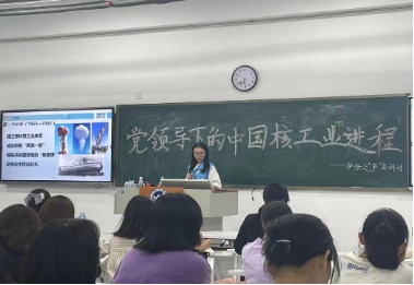 宣讲团成员廖锦菲围绕“党领导下的中国核工业进程”这一个主题,让2022级学前教育1班的同学们了解到党领导下的中国核工业发展历程,展现出我国核事业从无到有,从小到大,从大到强的历史画卷。在新时代,中国核工业将继续深入贯彻习近平总书记重要批示指示精神,牢记强核强国历史使命,立足新发展阶段,贯彻新发展理念,构建新发展格局,统筹发展和安全。