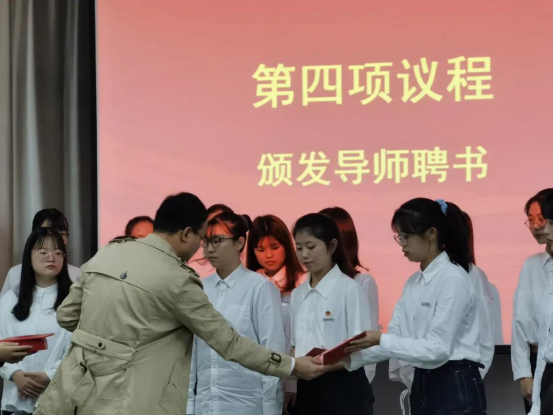 林院长对受聘的朋辈导师们进行祝贺并提出四点期望:一是要以身作则,做好低年级同学成长路上的引路人。二是要“以心换心”,做低年级同学成长路上的贴心人。三是要强化双向协同,努力适应环境和提升自我。四是要争做学习标兵,发挥模范带头作用,努力成为“四有”新人,不断提升自我综合素质,充分发挥表率作用,为我院的美好未来做出更大的贡献。