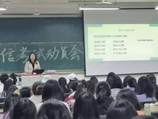 期末考试在即,教育学院辅导员为同学们做期末考试动员,表达了对同学们认真复习、诚信考试的殷切期许,强调大家需要遵守考试纪律,维护考试公平,注重知识积累,找到适合自己的学习方法,诚信从现在开始,从考试做起。
