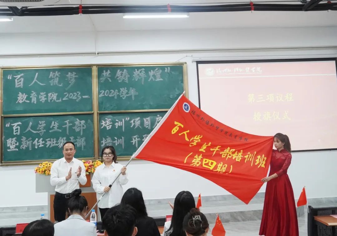 仪式伊始,各位学生干部一起观看了前三期“百人学生干部培训”项目的培训视频。视频中往届学生干部积极向上、携手共进的优秀表现树立了良好的榜样,增强了学生干部们对未来工作的信心。