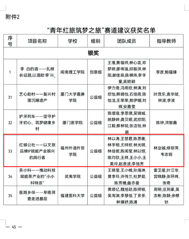 其中《红蟳公社——以文旅品牌IP赋能产业振兴的践行者》同时获得“青年红色筑梦之旅”赛道十佳人气奖。