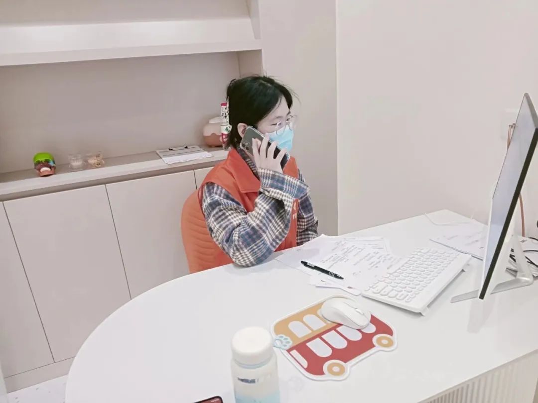 伢牙快乐站项目团队成员来到了到牙牙巴士(长乐店)开始了客服体验,进行电话回访工作。长达6个小时的工作时间,总计490多通电话,与379位家长取得联系。在沟通中,家长们对本次义诊活动好评如潮,大部分家长接受了牙牙巴士的到店邀请,并表示期待带孩子到店里详谈诊疗事宜。