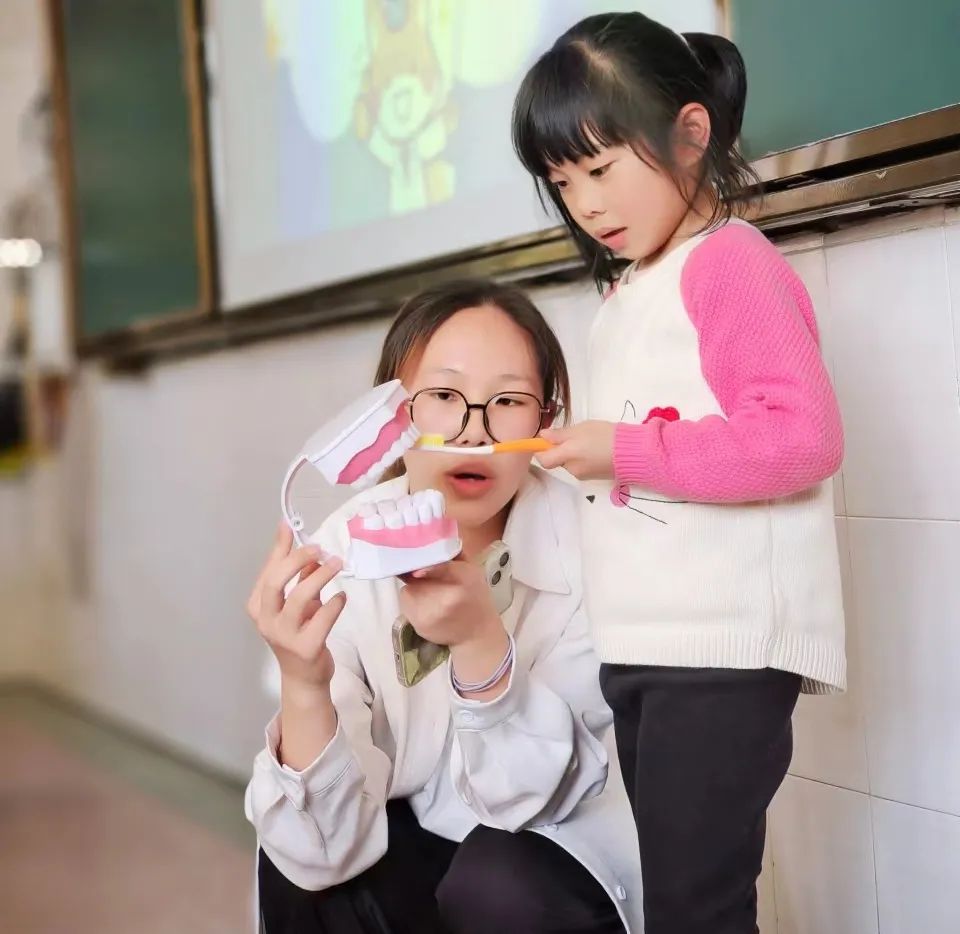 伢牙快乐站项目团队成员们开展了儿牙知识小课堂,用丰富有趣的小游戏,在轻松愉快的氛围中,使孩子们了解到了保护儿牙的重要性,以及保护儿牙的措施,并且在过程中应用了仿真放大的口腔模型,使孩子们能更直观的学习科学刷牙法。
