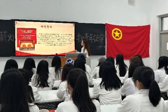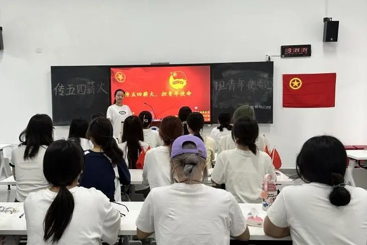 传五四薪火,担青年使命。为更深刻学习五四精神的深刻内涵,2023级小学教育1班团支部开展了学习五四精神深刻内涵的团课,突出了五四精神内涵对青年责任担当意识的重要作用。在此团课上,团支书带领全班团员青年进一步学习五四精神的深刻内涵,感受五四精神其伟大与深远。在此过程中,通过提问不同团员青年对五四精神内涵的理解和感悟,使团支部各同学更透彻的体会了五四精神不仅是那个时代青年人的追求和理想,更是我们今天依然需要秉承和发扬的宝贵财富。团课的最后,团支书带领全体团员青年重温入党宣誓词,齐唱团歌,呼吁全体团员青年铭记历史、弘扬传统、与时俱进、开拓创新,不断推动中国特色社会主义事业向前发展,为实现中华民族的伟大复兴贡献自己的力量。
