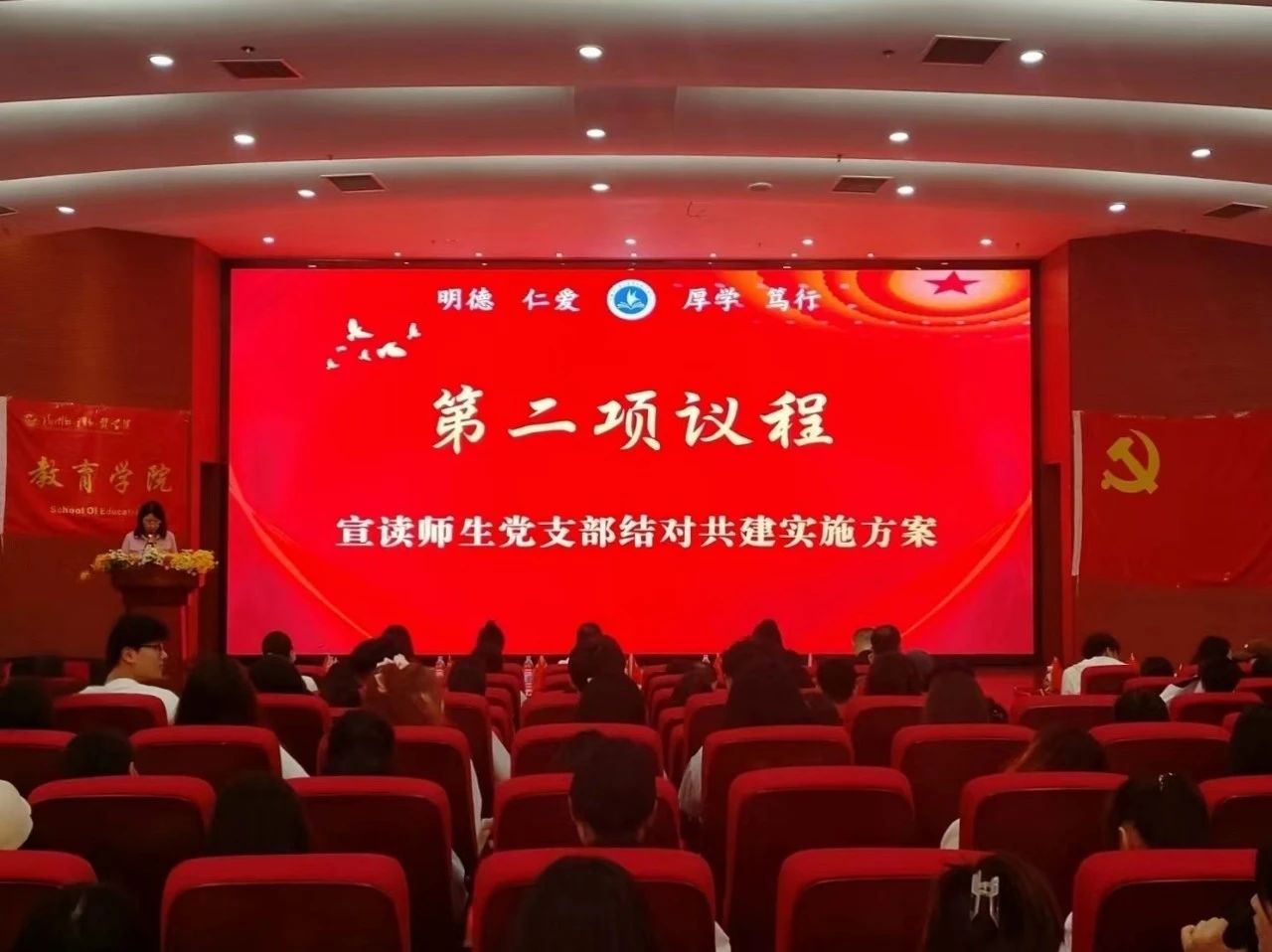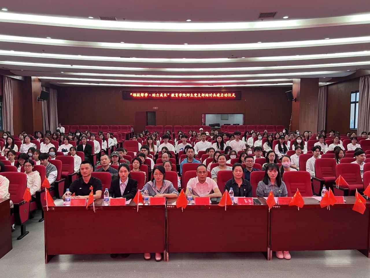 为深入学习贯彻习近平新时代中国特色社会主义思想和党的二十大精神,充分发挥教师党员在学生党员培养教育、成长发展过程中的能动作用,通过教工党支部和学生党支部结对共建,形成“党建+”育人模式,实现学院“三全育人”理念。教育学院分党委于5月21日在学术报告厅举行主题为“领航帮学·助力成长”的教育学院师生党支部结对共建启动仪式。