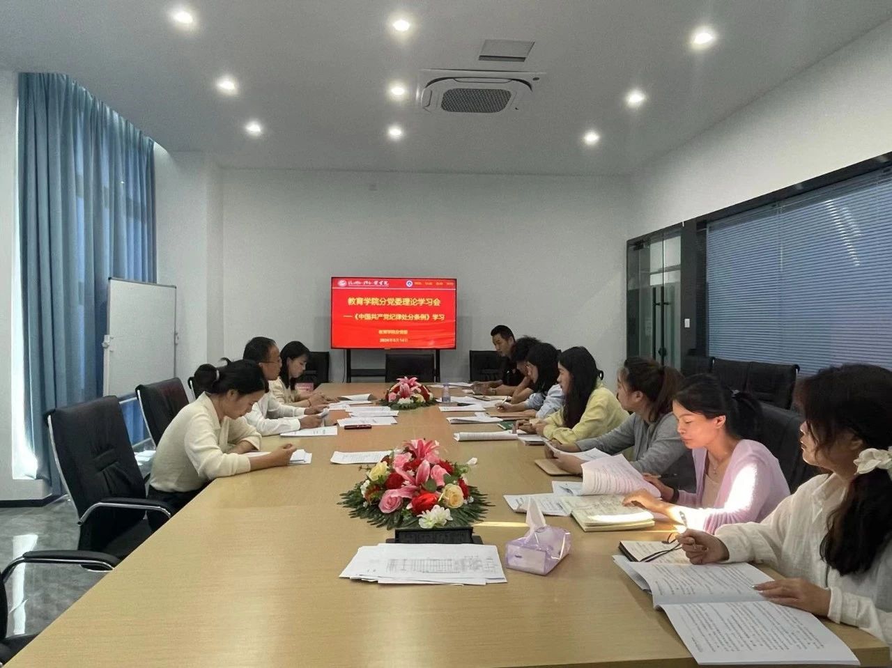 教育学院分党委于2024年5月14日在人文4-407开展解读党纪处分条例内容学习会。会议由教育学院分党委书记、副院长林业铖副教授主持。
