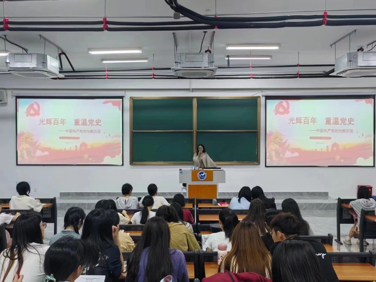 5月11日,教育学院郑诗荧老师在人文3-301主持开展以“光辉百年,重温党史”为主题的党课。引导全体学员从党的发展历程中汲取养分,学习先辈们舍己为国、大公无私的精神,学习党和国家取得重大历史成就的宝贵经验。