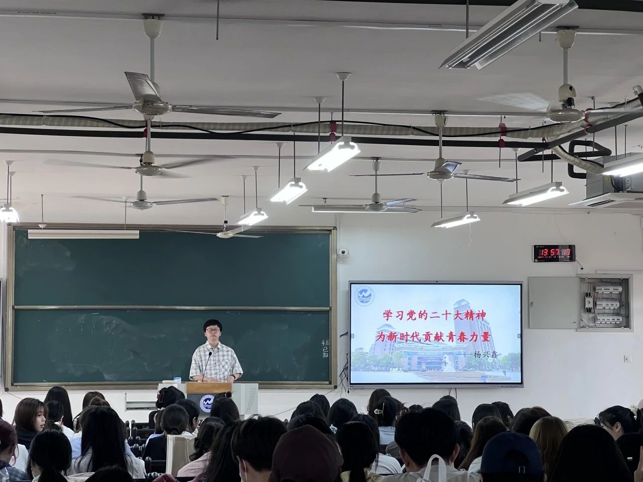 4月16日,马克思主义学院杨兴鑫老师在实验3-402召开以“学习二十大精神,贡献青春力量”为主题的党课。课上,杨兴鑫老师为培训班全体学员系统解读了习近平总书记向十九届中央委员会的报告,并介绍了党的两个百年奋斗目标及十九大以来党的历史成就及其重要意义。