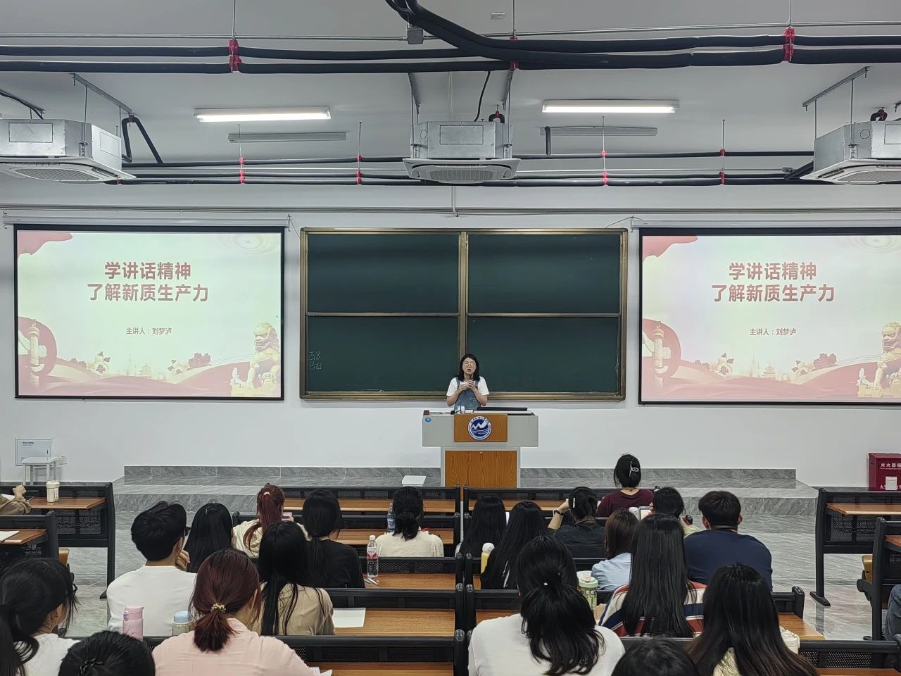 5月8日,教育学院刘梦泸老师在人文3-301主持开展以“学习讲话精神,了解新质生产力”为主题的党课。刘梦泸老师在课上强调作为师范类专业的学生,肩负着培育下一代、传承文化的重任,要在新质生产力的发展浪潮下以开放的心态、创新的思维、积极的态度迎接各种变化。