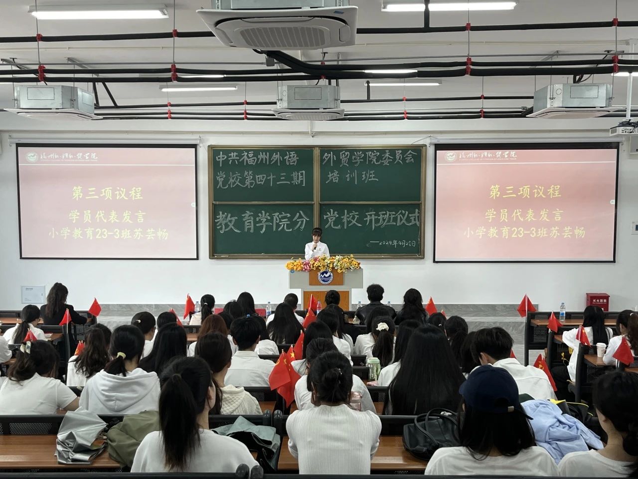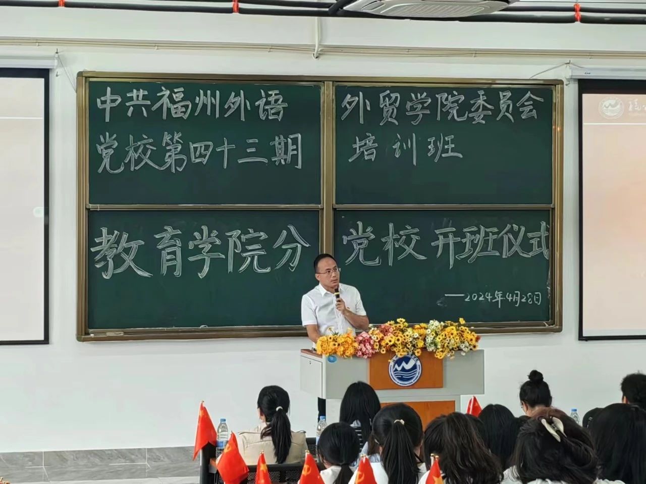 为进一步提高入党积极分子的思想认识,强化党性锻炼,端正入党动机,增强责任感和使命感,引导入党积极分子认真学习党的理论知识,教育学院分党委于2024年4月28日在人文3-301举行教育学院分党校第四十三期党校开班仪式。参加此次会议的有教育学院全体辅导员及第43期党校培训班全体学员。此次会议由教育学院学生第二党支部书记姜凤华老师主持。