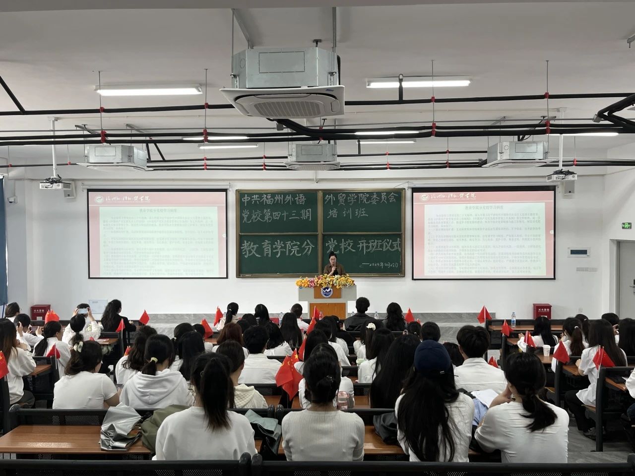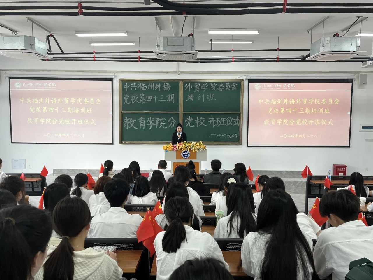 最后,本次开班在全体师生奏唱《国际歌》、校歌《福外赋》中落下帷幕。在此,希望第四十三期培训班全体学员在这一次的党校学习中,端正入党动机,明确为共产主义事业奋斗终身的信念,努力做到坚定信念、志存高远、认真学习、脚踏实地,不懈奋斗。