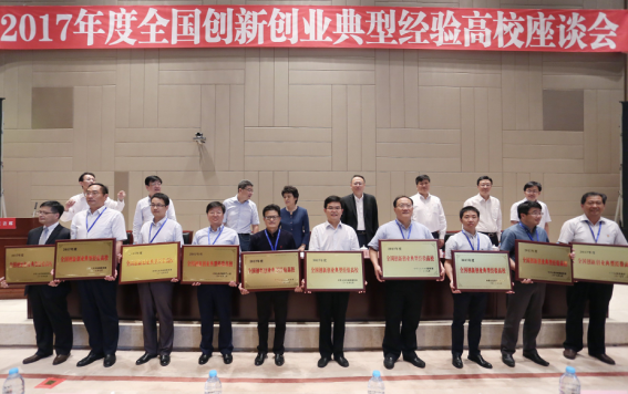 教育部领导为我校颁发 “全国创新创业典型经验高校”奖牌