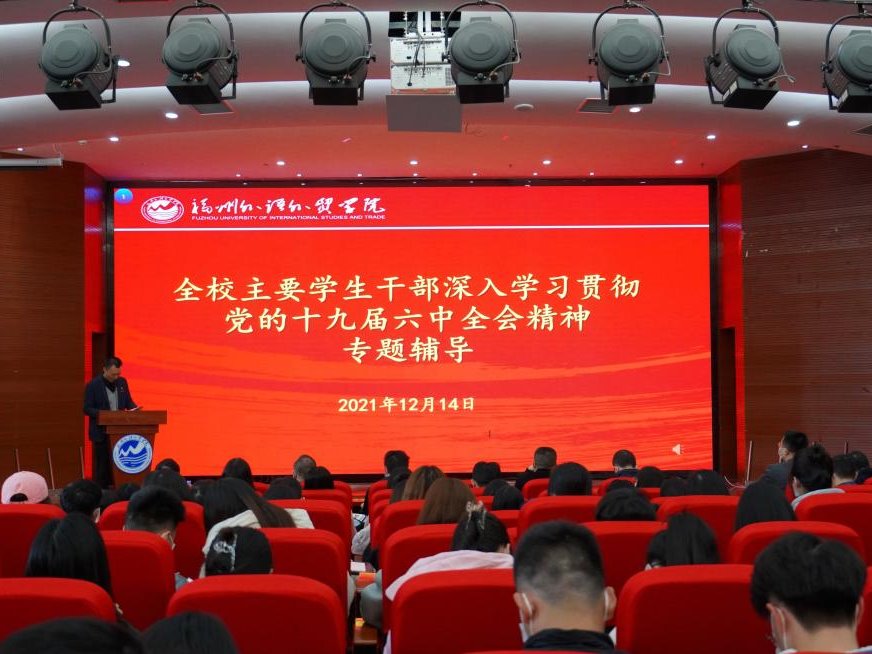 12月14日,我校组织开展全校主要学生干部深入学习贯彻党的十九届六中全会精神专题辅导,校领导陈炳钦、徐国立、黄跃舟,党委学生工作部负责同志,校团委负责同志,各学院分党委书记、分团委书记和主要学生干部300...
