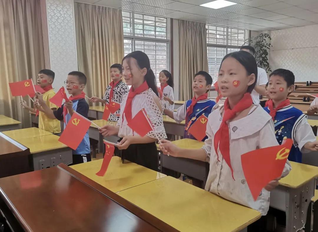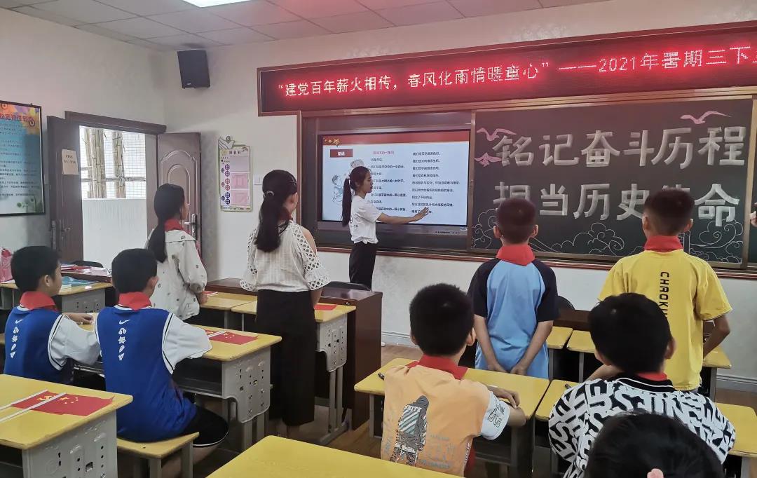 让党史铭记于青少年的内心,是我们此行的初心,“ 此生无悔入华夏,来生还在种花家”,通过观看视频,一个个历史瞬间定格在大家的眼前,那一张张黑白的照片,带着浓浓的历史气息。在稚嫩的童声中,队员们见证了小朋友们对党史知识的进一步的了解。不虚此行!