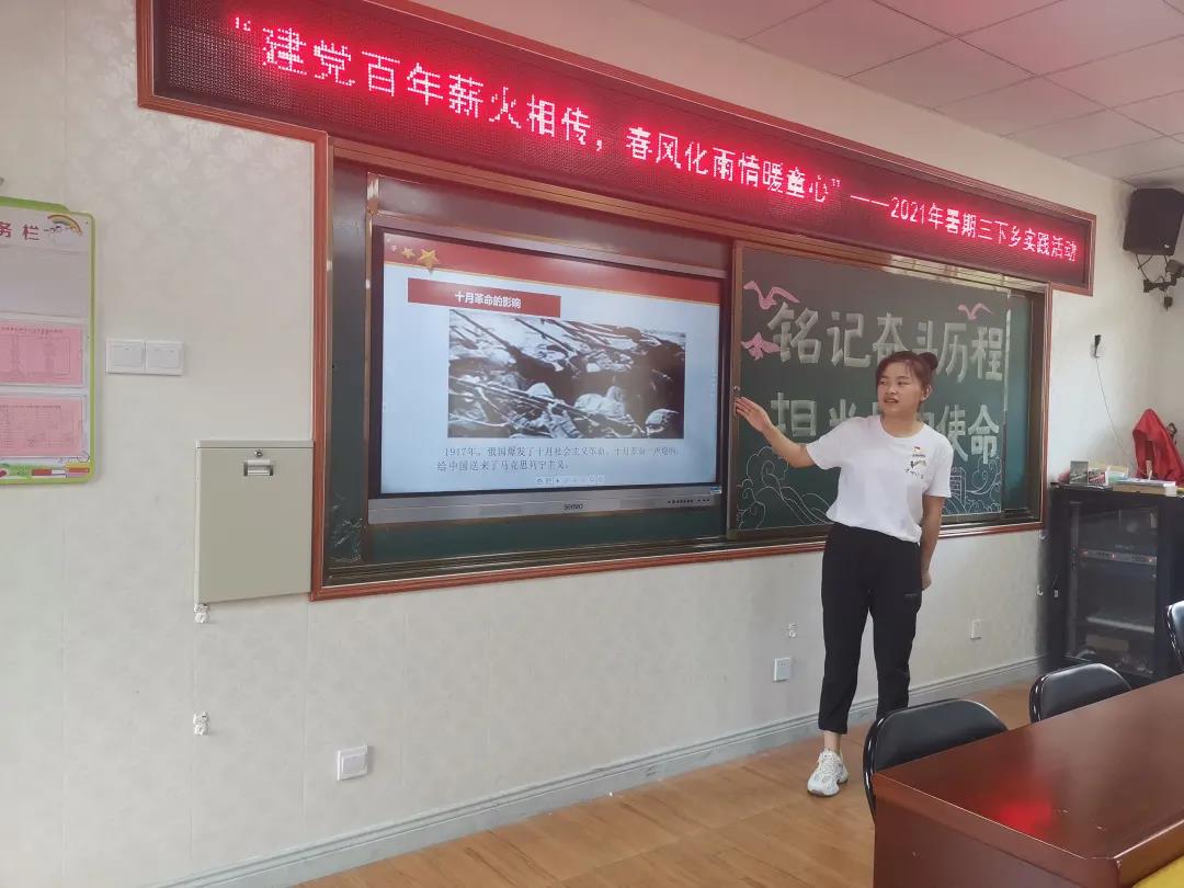 “通过这次三下乡实践活动,令我受益非浅,我明白到农村缺少的是教育与信息,同时这也锻炼、提高了我的综合素质。作为党员、作为安溪籍大学生,在此次的实践中,我们带着充满爱的热情,为学生带去关爱;同时带领学生学习党史,让他们了解党的光荣历史;通过学习,学生们也能感受到党的丰功伟绩和党的伟大贡献,通过学习党史,有助于学生加深对党的情感和对祖国的热爱。这虽说是我第一次参加社会实践,但我认为将会对我以后的学习起到重大作用,同时也希望大学生能够珍惜青春,用无限的青春创造无限的美丽。”