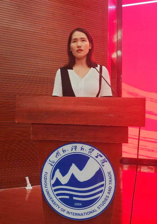 工程造价1班金欣羽同学作为新生代表发言。她号召同学们,在享受美好的大学生活的同时,也不能忘记,来到福外的初心——好好学习,以己之所学,回报社会,回报祖国。同时,她号召同学们要学会学习,敢于尝试、勇于担当,在育环路28号留下一串串坚实的足迹,谱写属于自己的青春。
