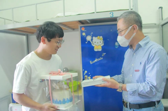 当复学返校日遇上生日,大家也许只能在忙乱中让喜庆的生日匆匆略过。但令人惊喜的是,今天,我院为2021级智能建造1班许宏森同学准备生日蛋糕和冰心限量版藏书票,以这种暖心的方式欢迎他成为智能建造学院的一员。
