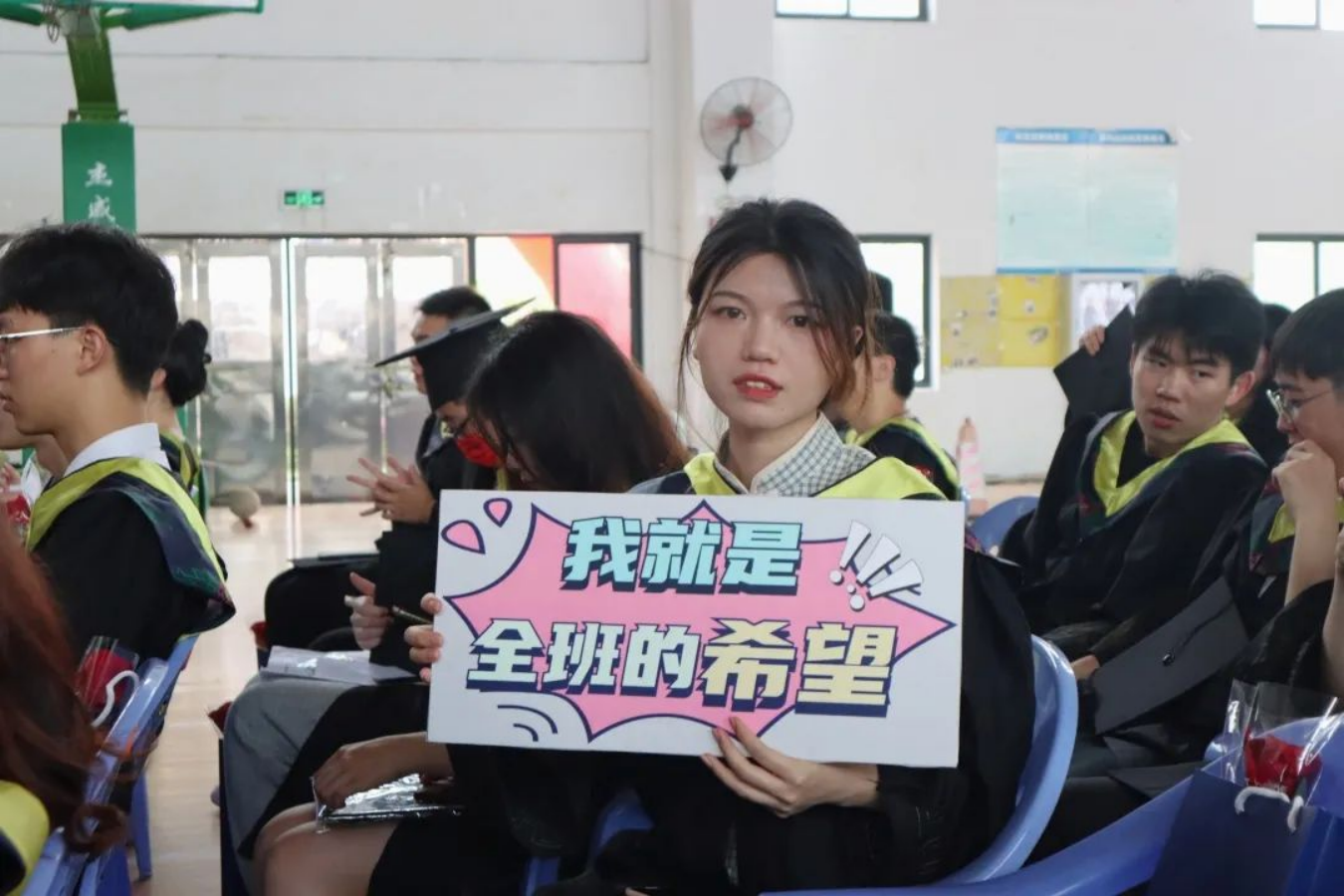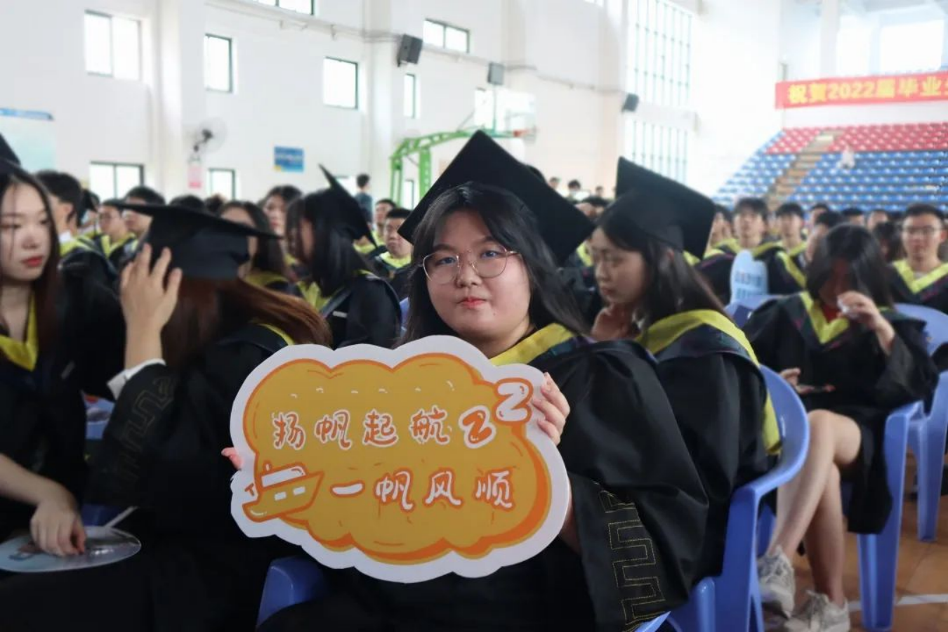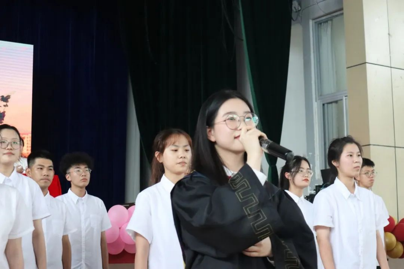 在校生代表翁君喆首先对老师致以最崇高的敬意,接着对2022届毕业生送上最诚挚的祝福。他表示,离别是为了更好的相聚。从学长学姐们身上,看到了对同窗的依依不舍情、对母校的浓浓的依恋意,更看到了大家对踏上新征程的满满斗志。
