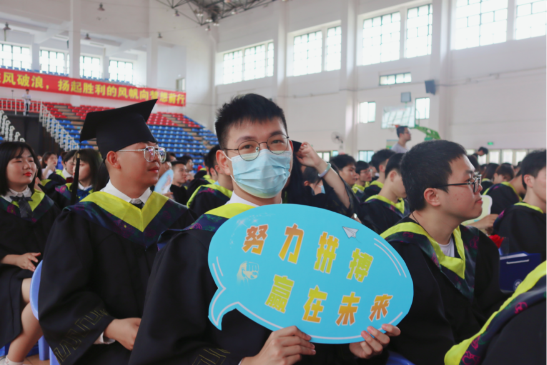 “还记得军训场上,我们用响亮的口号喊出了青春的豪迈;还记得运动场上运动健儿们飒爽英姿的身影;还记得期末考前座无虚席的图书馆和寝室里的挑灯夜战,太多太多的记忆将成为我们一生中永久的珍藏。我们经历过大一的纯真年代,走过大二的轻舞飞扬,告别大三的紧张与忙碌,来到今日大四的依依惜别。”2022届毕业学生代表陈辉深情回忆了专属2022届毕业生的独特经历,彰显出了2022届毕业生们敢于追寻未来的勇气。