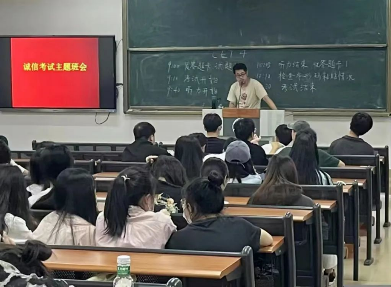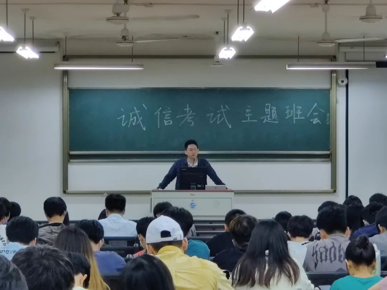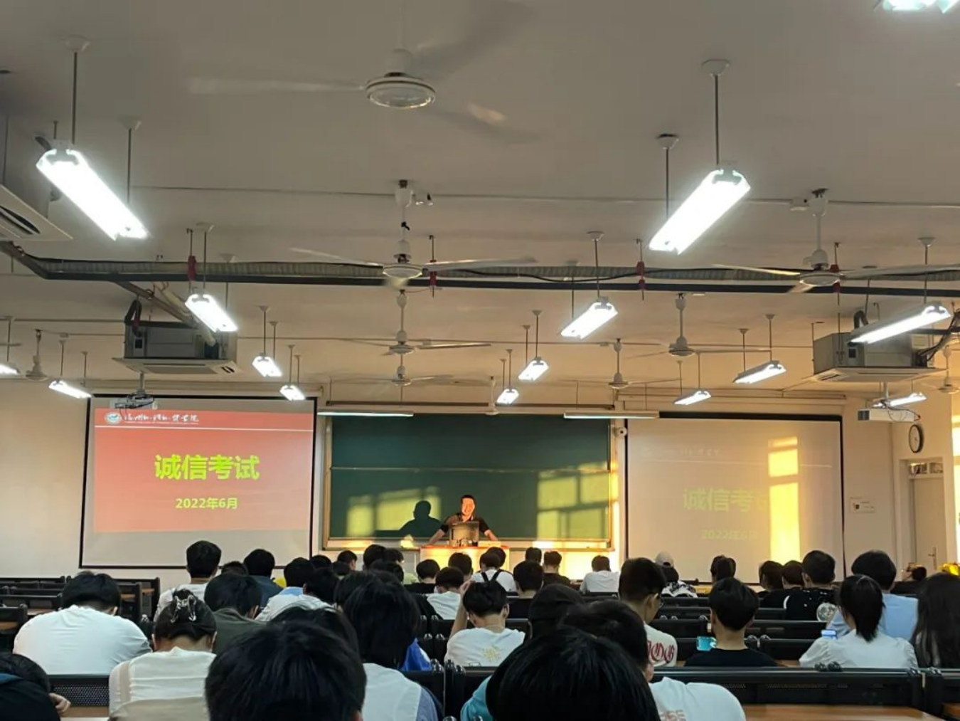 由吴煜洺老师宣读《诚信考试倡议书》,并说明作弊对获取学士学位证书的重大影响,希望同学们可以清晰地认识到作弊的严重性,以认真的态度诚信应考,同时预祝同学们在期末考试中取得优异的成绩。