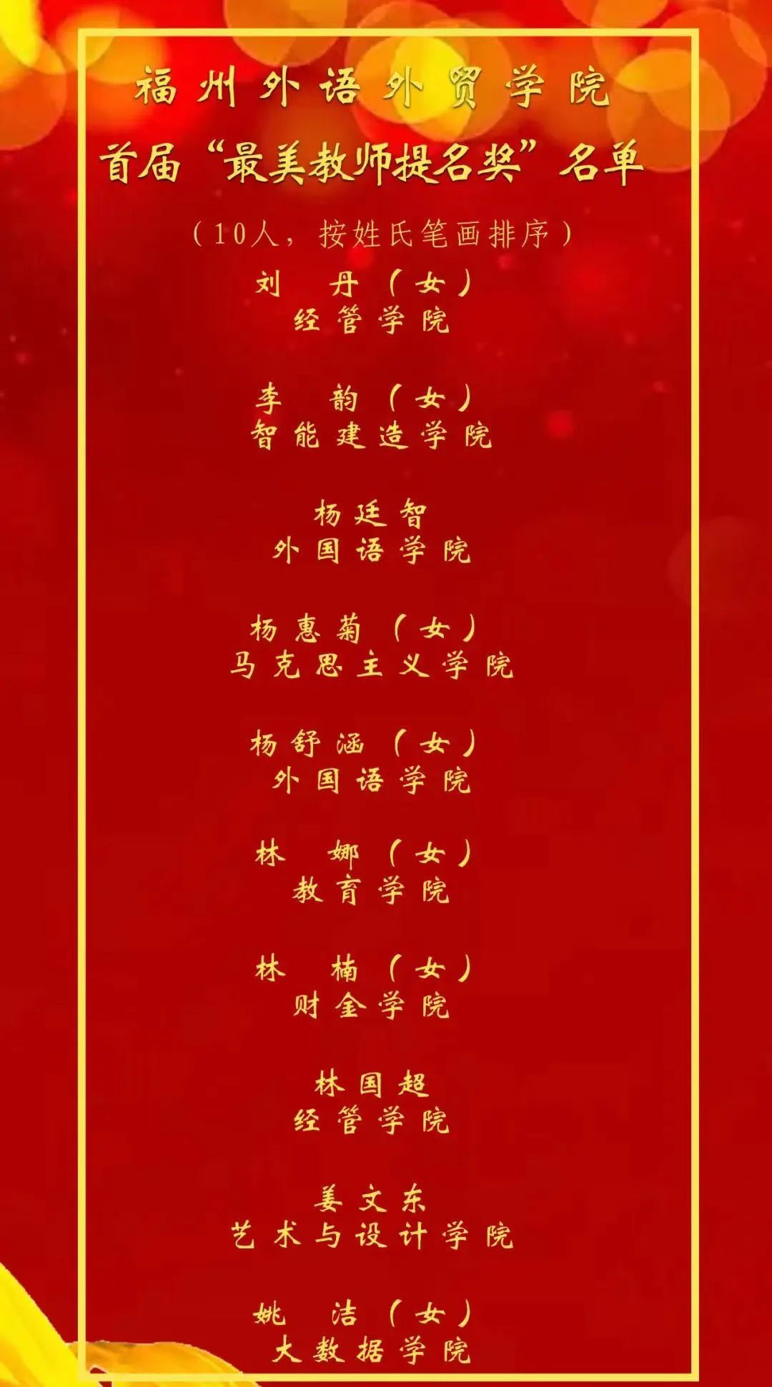 10月11日,乐鱼网页版首届“培根铸魂,繁星福外"最美教师现场评选在学术报告厅隆重举行,我院教师钟灵芳荣获“最美教师”称号,教师李韵荣获“最美教师提名奖"称号。