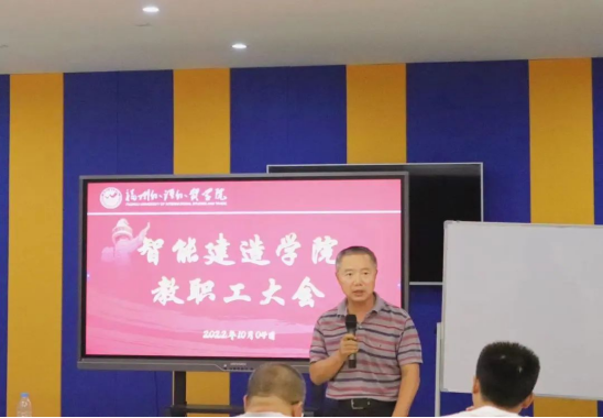 10月4日下午14:00,智能建造学院全体教职工大会在教5-403VR实训中心顺利召开。我院院长毕贤顺,副院长陈忠源,副院长、分党委书记吴晓凯及全体教职工参加本次会议。