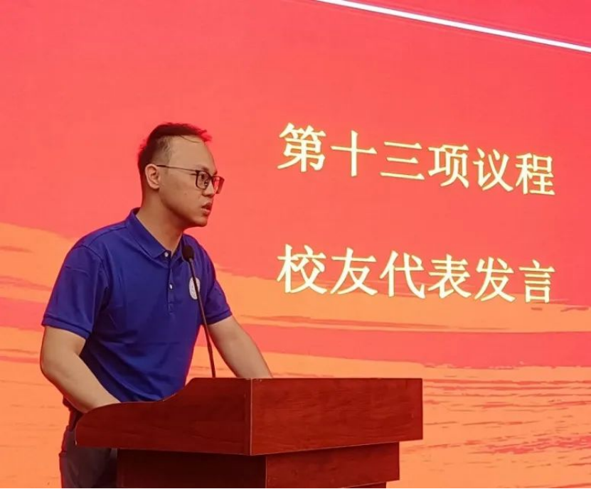 校友代表张洪镪会上感谢母校对校友的关爱,会继续汇聚广大校友智慧和力量,在思想交流、事业合作、信息共享等方面深化交流,让广大校友肩负使命、追求卓越,支持母校的建设和发展。