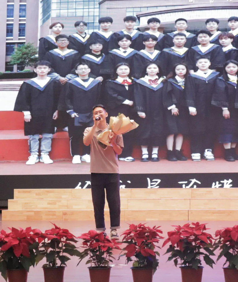 毕业生辅导员代表陈燎原发言:师生是一场缘分,春秋几载,彼此相伴。有幸经历了你们的青春,见证了你们的成长,愿你们初心不改,笑容依旧;愿你们逐梦不悔,筑梦成真;愿你们岁岁安,年年喜,奋斗拼搏,不负韶华。