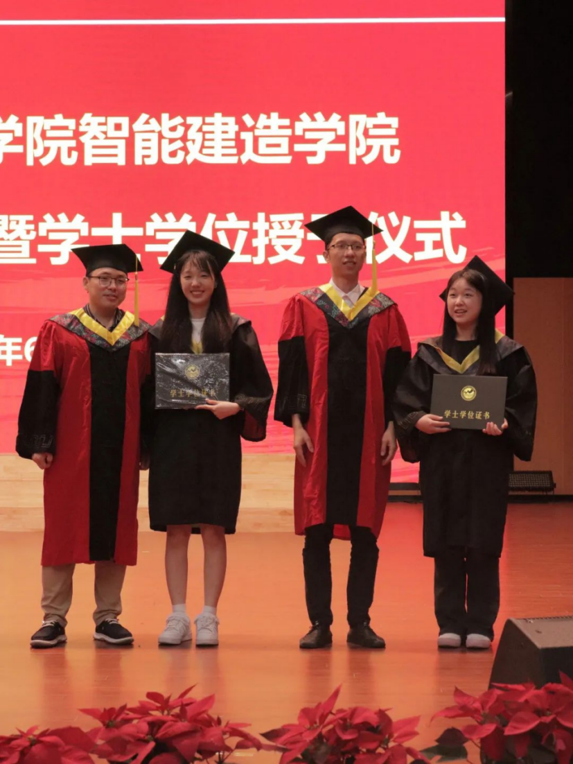 吴晓凯书记宣读《智能建造学院2022届优秀本科毕业生名单》和《智能建造学院2023届“校长嘉奖令”毕业生名单》,院领导为各位优秀本科毕业生和荣获“校长嘉奖令”的毕业生颁发证书。