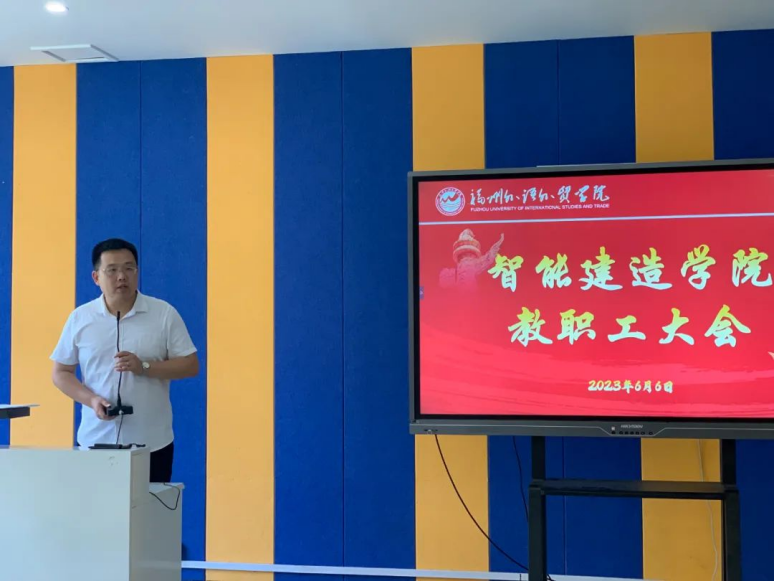 6月6日下午,智能建造学院在教5403VR实训中心召开全体教职工大会。院长毕贤顺、副院长陈忠源、副院长、分党委书记吴晓凯及全体教职工参加了本次会议。会议由办公室主任汪翠茹主持。