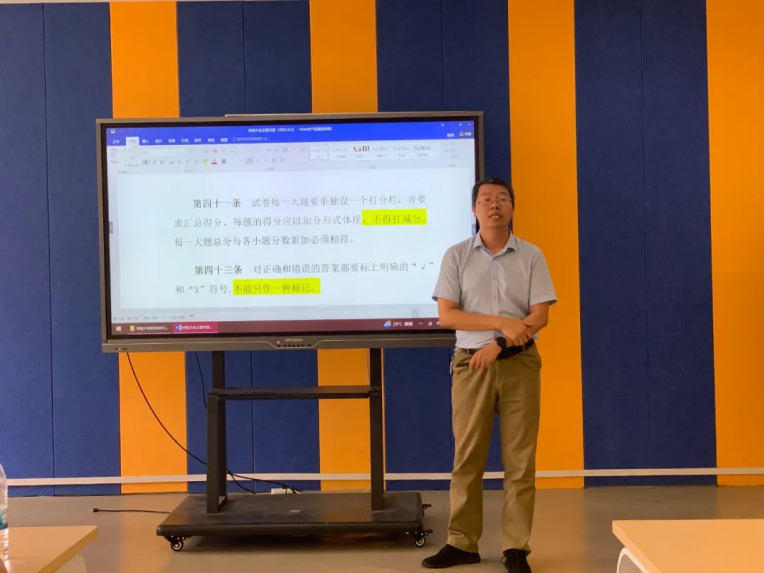 陈忠源副院长围绕期末考试、课程档案建设、教学手册撰写、学科竞赛、横向课题经费等方面对学院教学与科研重点工作进行安排。他强调期末试卷出题规范以及改卷要求,重申监考纪律,希望老师们能认真负责以保证期末考试工作顺利进行。他要求老师们认真填写教学手册,并做好相关材料的整理归档。随后,他为大家详细解读了学校关于横向科研项目经费管理办法以及学院学科竞赛管理办法中的相关规定,鼓励教师们积极带队指导学生参加各级各类学科竞赛,激励教师们贯彻好科研政策、做好横向科研项目研究,为学院竞赛、科研工作高质量发展共同努力。