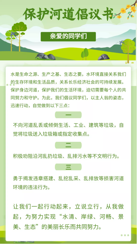 通过本次活动,同学们表示对开展河长制工作的意义、方法、措施有了进一步的了解,并对巡河活动有了兴趣,让长乐每一条河流真正实现“河畅、水清、岸绿、天蓝、景美”。