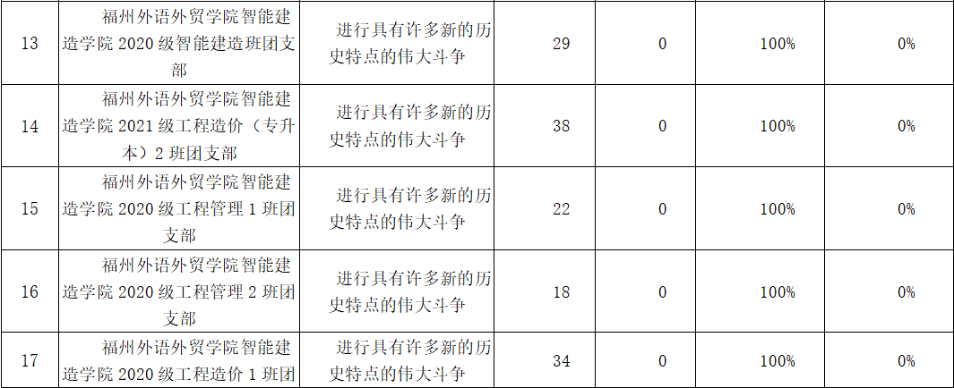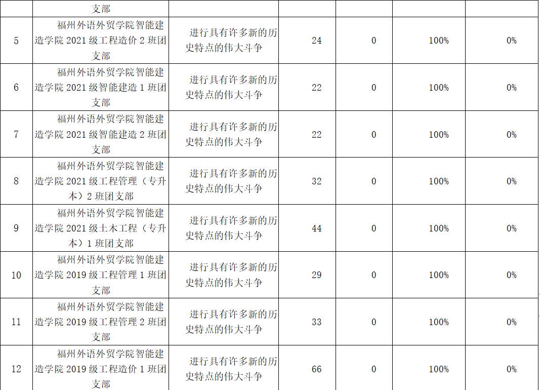 根据数据显示,第十二季“青年大学习”第八期的排名,智能建造学院共有35个团支部,均在规定时间内提前完成了学习任务,完成率为100%,(其中19个支部在周三前便完成了任务,积极主动性较高)。