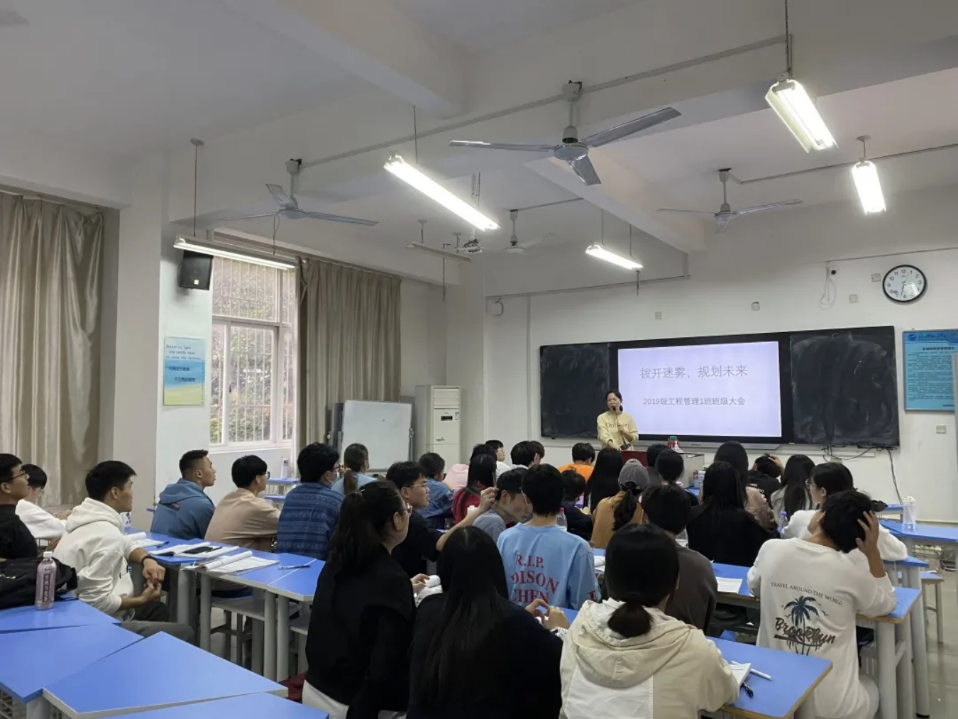 2021年10月28日下午,2019级工程管理1班班导师陈文静在教2104教室组织召开题为“拨开迷雾,规划未来”班会。