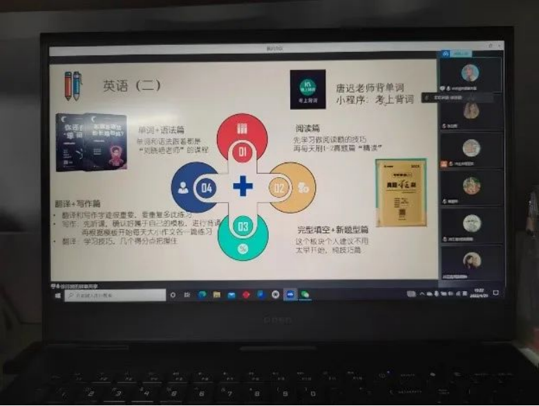 对于英语,学姐分别从单词语法篇、阅读篇、完形填空新题型篇以及翻译写作篇四个方面来说明相应的做题方法以及技巧。